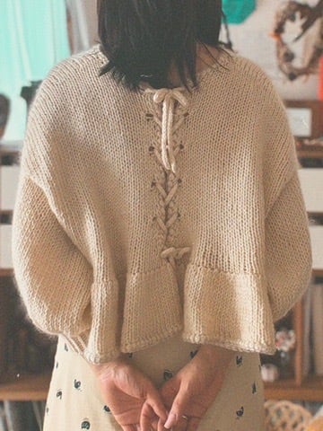The body and sleeves are designed with plenty of volume, and the lacing detail at the back, finished with blanket stitch, adds a unique accent.